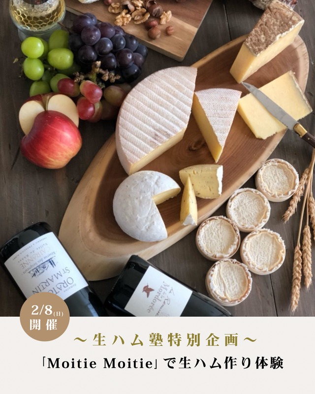 \\ 越後川口生ハム塾特別企画 // 「 Moitié -Moitié × みんなのハム 」生ハム作り体験を開催します!! 今回特別編として三条市にあるチーズとワインのセレクトショップ「 Moitié Moitié (モワチエ・モワチエ)」さんの2階の料理サロンで行います。 オーナーの岡田知子さんは、C.P.A認定チーズプロフェッショナルをはじめ、CAFA®︎認定フロマジェ、Guilde Internationale des fromagers叙任Garde et Juréなど数々の資格を持つナチュラルチーズの専門家。 フランス・イタリア・イギリスなどの伝統輸入チーズや優れた国産チーズを取り扱い、大きなブロックから店内でカット仕立ての美味しさを提供している県内でも貴重なお店です。 また、フランス産の生ハムやサラミ、そしてみんなのハムの生ハムも扱って頂いています。 https://things-niigata.jp/other/moitie-moitie/ 〜〜生ハム塾特別編の特典〜〜 特典① 【ラクレットパーティーの開催】 ・Made in Niigataの生ハムの魅力と、生ハムに相性のいいナチュラルチーズ料理やワインを楽しめます。 ・生ハム作り体験の終了後に、Moitié -Moitiéセレクト溶かして美味しい「ラクレット」他数種のチーズをご用意しております。 ・ラクレットグリルで溶かしたての熱々チーズを「みんなのハム特製シャルキュトリー」はもちろん、地元旬の野菜、焼き立てパンにのせて一緒にお召し上がりいただきます。 ・チーズやハムにぴったりなワインやノンアルコールドリンクもご用意いたします。 特典② 【完成した生ハムをMoitié -Moitiéでオーダースライス】 ・ブロック生ハムコースの方限定でMoitié -Moitiéのドイツ製BIZERBAでスライスサービス。 ※事前予約制、皿などの容器のご持参お願いします 〜〜イベント概要〜〜 【日 時】令和8年2月8日(日) 午前の会 9:30〜12:30 午後の会 14:00〜17:00 【会 場】チーズ屋の2階 三条市本町1-3-20 【定 員】各会4組 ...1組4名様まで 【参加費】 ①生ハム作り体験料 A.原木生ハムコース 83,000円(税込) B.ブロック生ハムコース 90,000円(税込) ※原木とブロックの違いはこちらをご覧ください ↓ ↓ ↓ ↓ ↓ https://minnanoham.official.ec/p/00001 ②ラクレットパーティー参加費 5,000円 (1名様分は体験料に含んでいます) 【お申込み】1月31日(土)まで。各会定員になり次第終了 【お問合せ】みんなのハム 080-3148-5754、Moitié -Moitié 0256-32-1116 〜〜生ハム塾の詳細について〜〜 「生ハム塾」は、豚の後ろ足(骨付きモモ肉)1本を丸ごと仕込む、生ハム作りの体験イベントです。 体験内容は、生ハム作りの最初の工程の"豚モモ肉の血抜き"、"塩のすり込み"を行います。 生ハムに使用する材料は、新潟県産の豚肉と厳選した塩のみ!!添加物などは一切使用しません。 〜〜原材料〜〜 ・皮付きの越後もち豚(新潟県産) 皮付きの豚肉は、イタリアで作られるプロシュートに使用され、国内ではほとんど流通しない貴重な肉です。 ・塩はイタリアシチリア産の海塩を使用します。 体験いただく血抜き・塩のすり込みの工程は、豚肉を生ハムに変えるファーストステップ!!生ハム作りでとても重要です。 そしてその後の工程は、越後川口にある生ハム製造所で管理させてもらいます。 越後川口を流れる魚野川の風を活かして生ハムを乾燥させて、生ハム専用の雪の貯雪庫から熟成庫内に冷気を送り低温・高湿の環境で熟成させ仕上げます。 生ハムの完成は2026年5月頃、約16ヶ月かけて生ハムに仕上げていきます。 お渡しの時期が近づきましたら、生ハム完成のご案内させて頂きます。 ※1.お申込み頂いた方には、生ハム作り体験の詳細のご案内を別途お送りさせて頂きます。 ※2.当商品は体験イベントのため、お申込み時に商品の発送はございません。